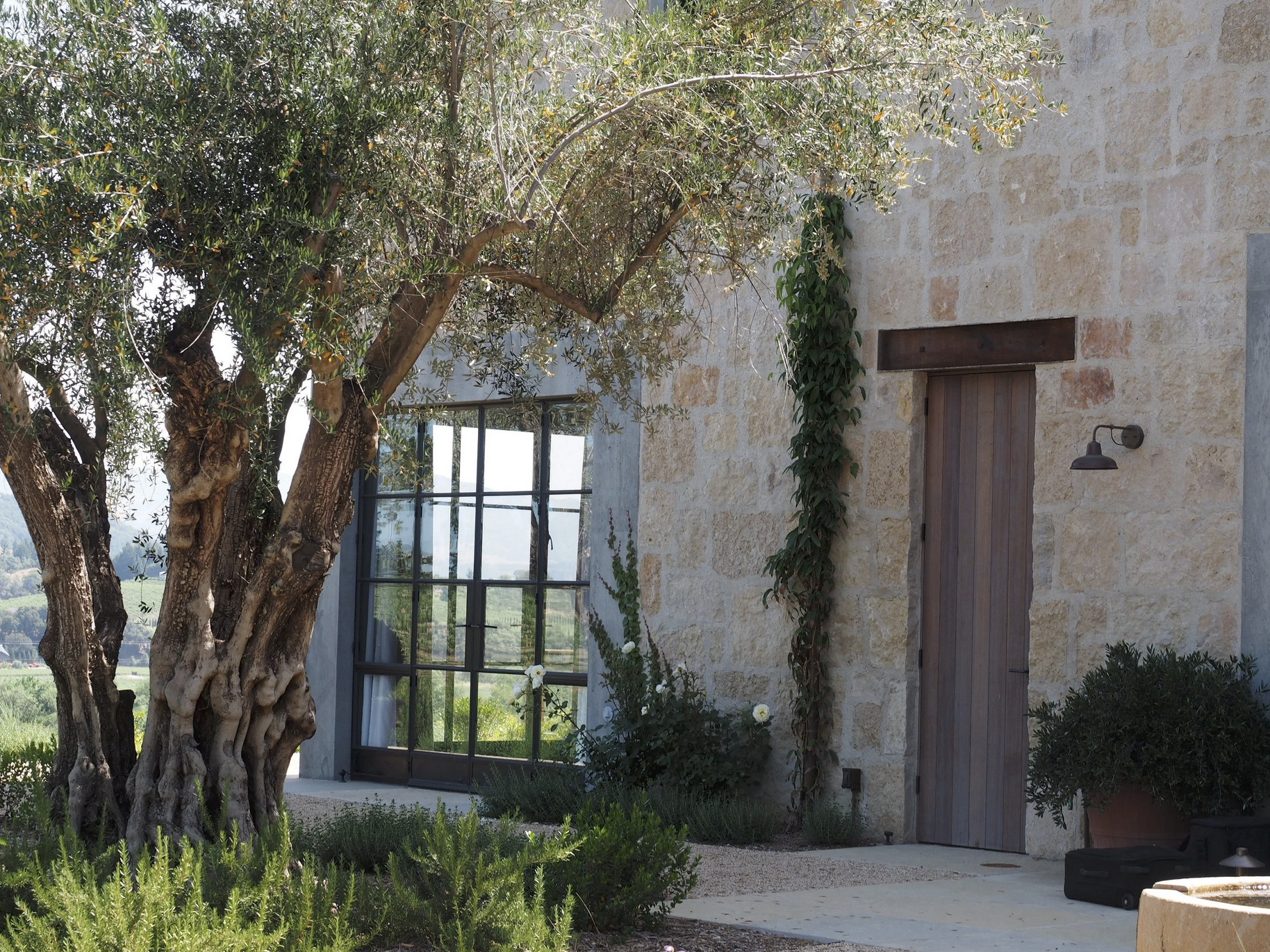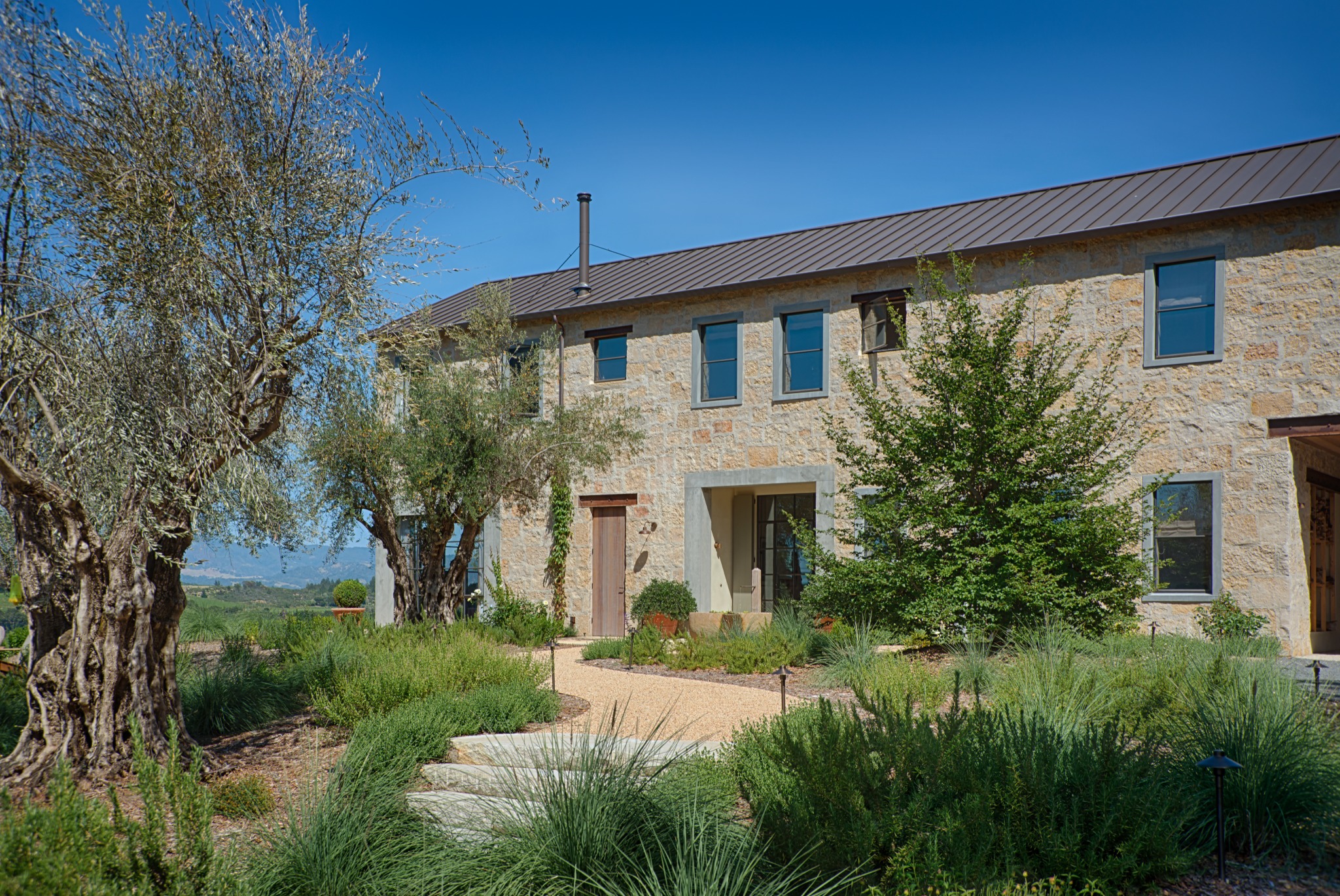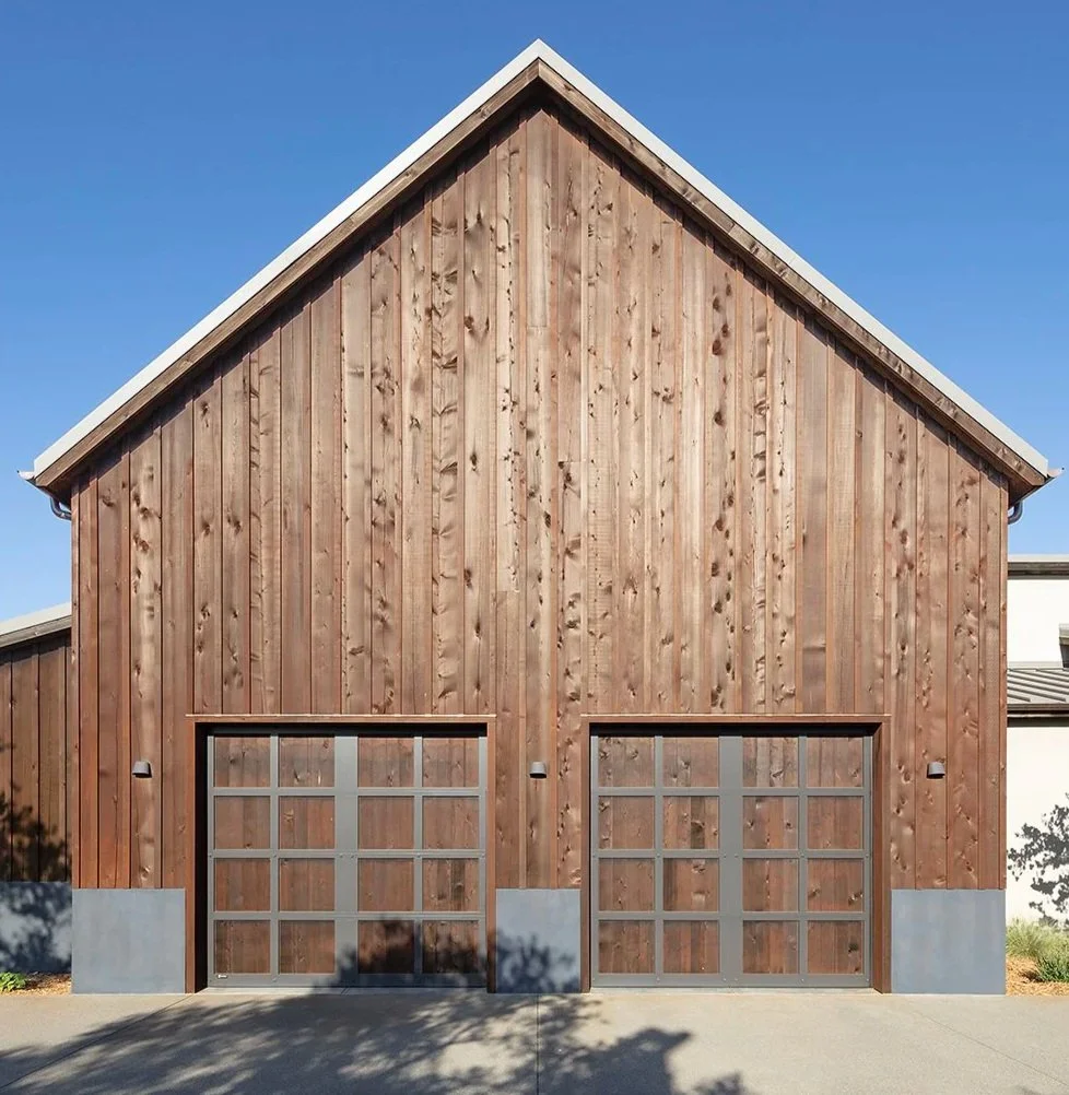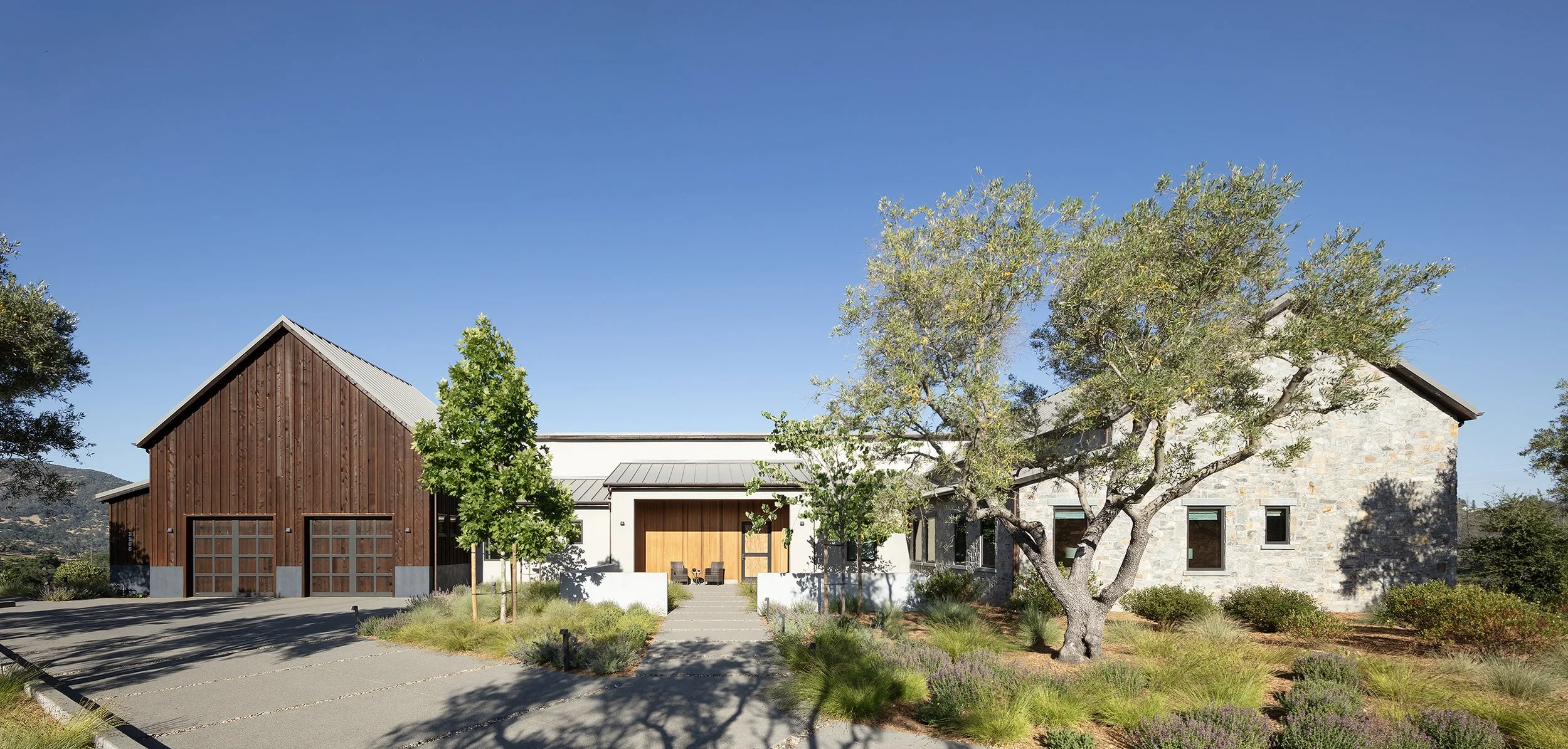 A new rural home designed to look like a renovated winery with a modern addition